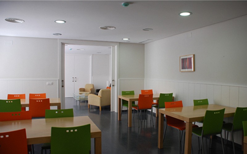 La zona de habitaciones, dimensionada para acoger a 20 usuarios en habitaciones individuales queda aislada de los espacios más ruidosos de la casa. Las habitaciones están organizadas en bloques de dos, respondiendo a la lógica estructural de un edificio construido de muros de cargas y permitiendo una optimizándose cuando al uso de baños y aseos compartidos por cada dos residentes.