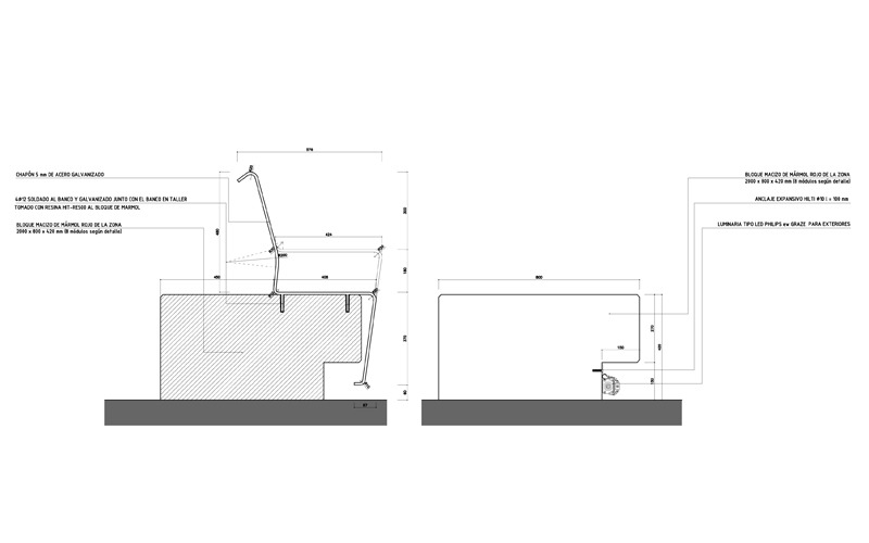 Jardinera y asientos para el espacio público ubicado sobre el aparcamiento subterráneo de José Laguillo.
