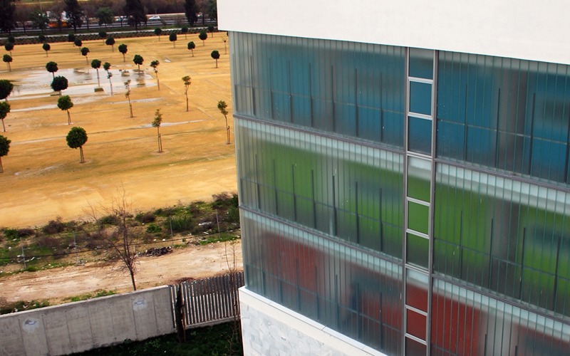 El edificio está situado en la Calle Portobello en un área de reciente expansión junto al Nuevo Parque del Guadaira y una estación del Metro.