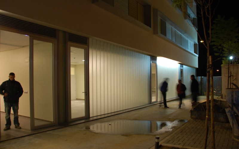Desde la calle de acceso el edificio tiene una posición central y un desarrollo longitudinal perpendicular a la calle dejando dos accesos, uno a cada lado, independientes y separados, uno para las viviendas y otro para el centro social. En el bloque galería las viviendas se orientan hacia el sur y el este al igual que las estancias del centro social que miran todas hacia el sur.