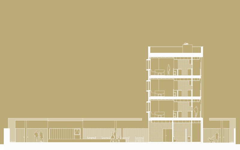 El centro proyectado tiene dos partes bien definidas: una con un programa residencial y otra asistencial, ambos relacionados pero independientes.