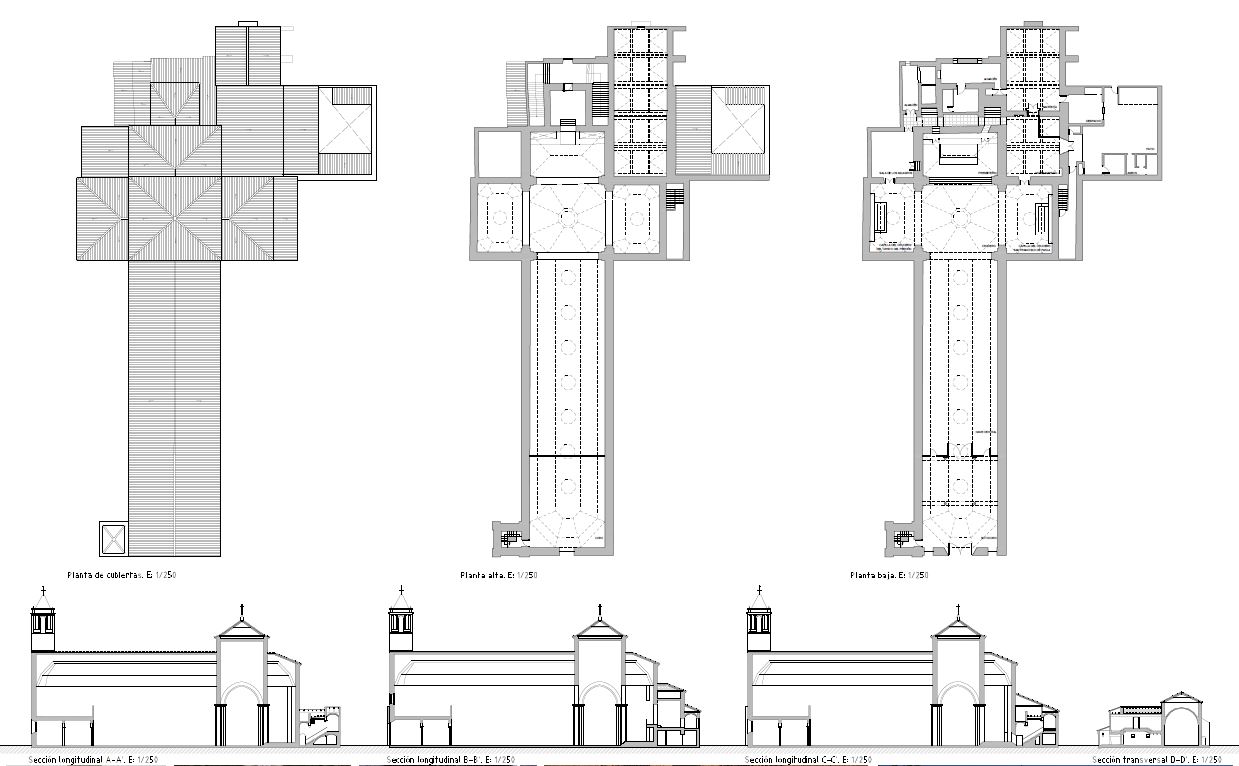 • Ejecución de nueva cubierta mediante estructura metálica, rasillones, capa de compresión de microhormigón, aislamiento térmico, impermeabilización y teja cerámica curva similar a la existente en el resto del Santuario. Colocación de líneas de vida sobre las cumbreras de la cubierta afectada para hacer posibles futuras reparaciones y limpieza de los tejados.