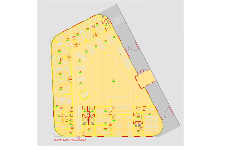 Desde el vestíbulo de planta baja se accede directamente al mostrador de información, a las comunicaciones verticales y a los servicios más usados por los ciudadanos, como rayos, educación sanitaria, pediatría, etc.