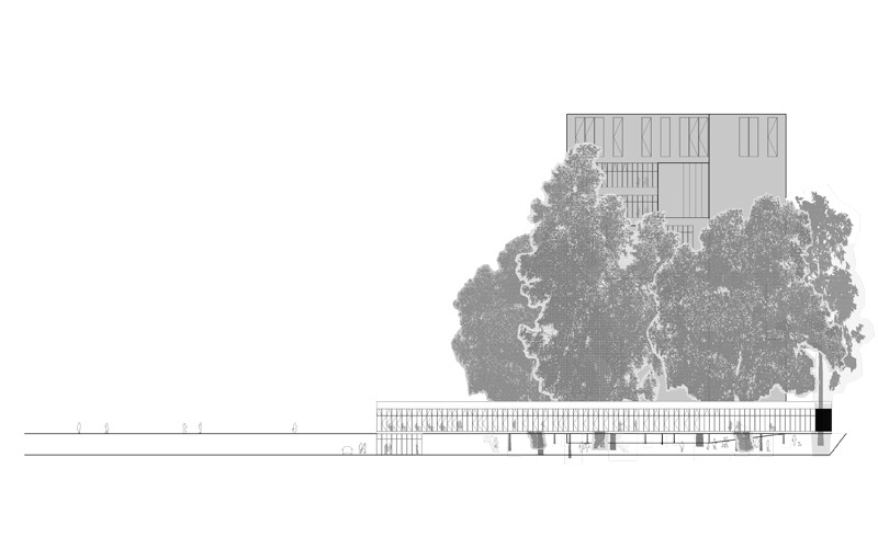 Teniendo en cuenta las distintas áreas del archivo, la necesaria separación entre ellas y las dependencias que la conforman, hemos establecido los diferentes circuitos y recorridos, diferenciando claramente por un lado el circuito de los documentos y por otro el circuito de los visitantes. Igual que el vino, los documentos necesitan un espacio de almacenamiento con unas condiciones especiales de compacidad para optimizar el espacio, de semioscuridad sin luz directa, ventilación, temperatura, etc. En las bodegas las barricas se organizan en pilas (compactos) dentro de edificios que llamamos cascos de bodegas (volúmenes de depósitos) y entre estos cascos se establecen estrechos callejones que son los encargados de proporcionar la escasa luz necesaria y la ventilación, todo ello en sombra porque algunos de ellos también sirven para el trasiego en la circulación interior de esa pequeña ciudad que es una bodega. En ese mismo sentido se podría decir que el archivo es un gran contenedor compuesto por una sucesión de volúmenes separados entre sí por estrechos callejones y que se van alejando de la Avenida de Andalucía a medida que son menos accesibles al público.