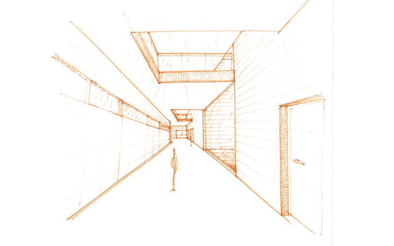 La fachada principal, que da a la vía de acceso, se resuelve con un lenguaje arquitectónico contemporáneo pero sólido, proyectando transparencia y solemnidad. El interior se articula mediante recorridos claros, tanto para usuarios como para personal, separando circuitos públicos y privados para cumplir con los requisitos de seguridad judicial.