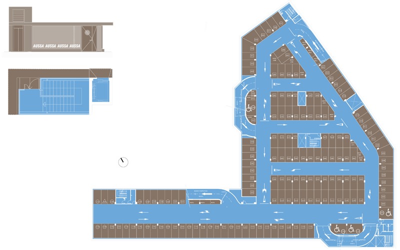 • Construcción de un aparcamiento subterráneo con 519 plazas de aparcamiento, distribuidas en tres plantas bajo rasante. Las entradas y salidas para tráfico rodado al aparcamiento se realizarán a través de rampas situadas en la calle José Laguillo y la calle Arroyo.