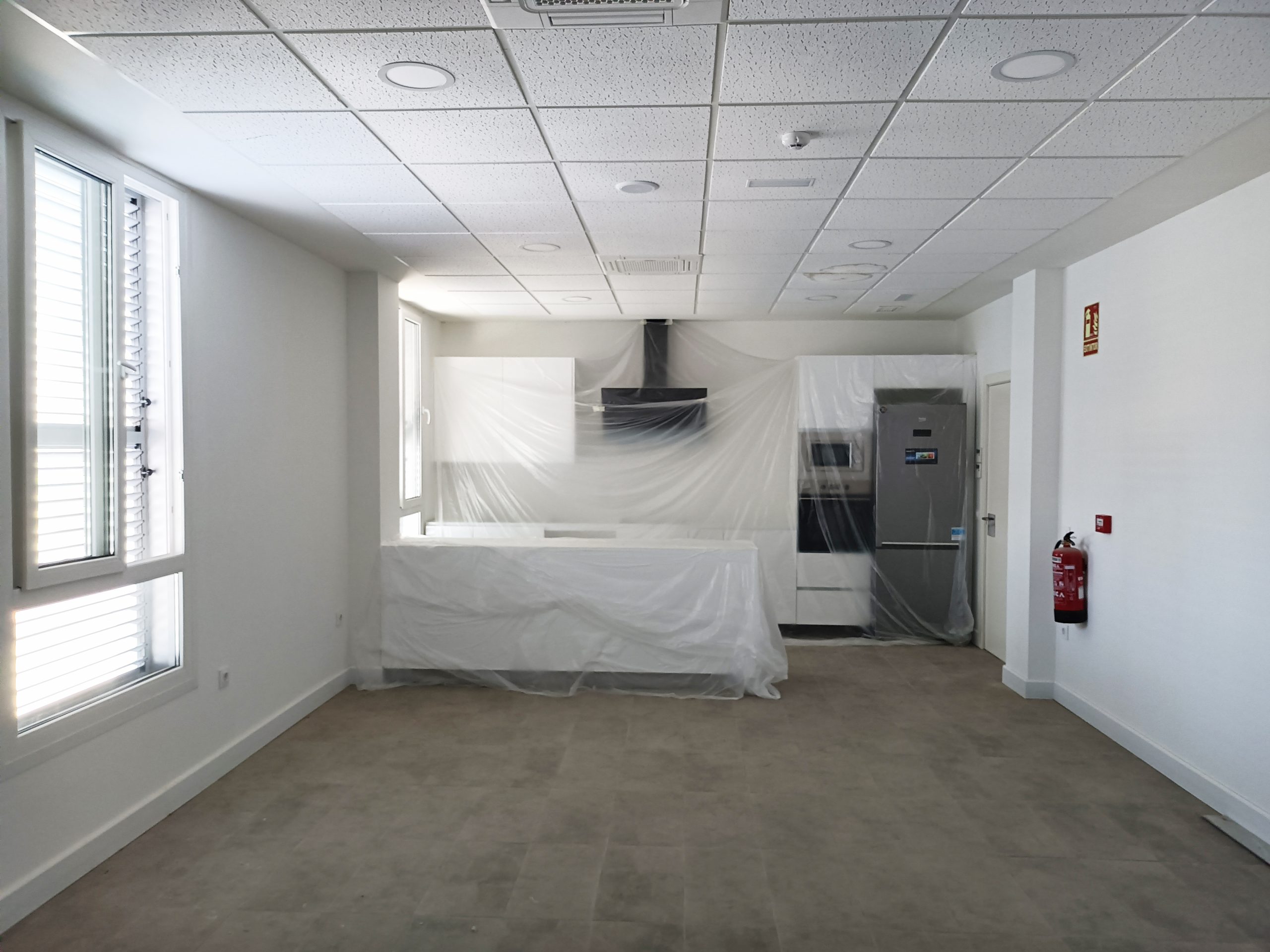 En el volumen auxiliar hay dos zonas, una con dos alturas que iguala la altura del hangar.