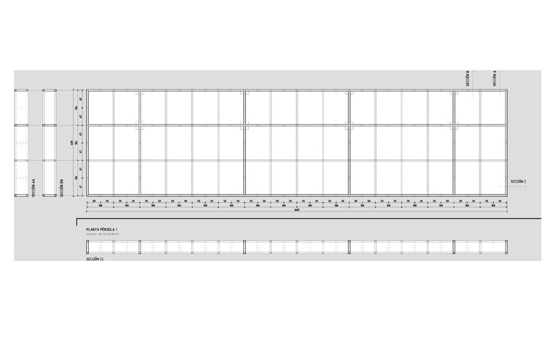 Pérgola de acceso en Museo de los Dólmenes. Antequera, Málaga.