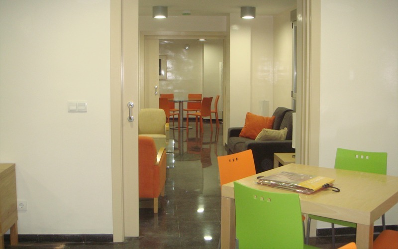 Por otra parte, se crea un nuevo eje de circulaciones interiores paralelo al ya existente, de uso exclusivo para los residentes de la casa-hogar, con acceso a las habitaciones y los cuartos de baño.