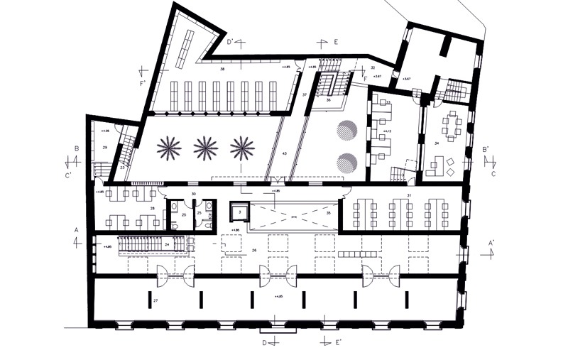 La intervención consistió en la adaptación del edificio para nuevos usos culturales, respetando su valor histórico y arquitectónico. Se reorganizó el espacio interior para albergar actividades culturales y administrativas, incorporando elementos contemporáneos que se integran armoniosamente con la estructura original. Además, se prestó especial atención a la conservación de los elementos arquitectónicos significativos y a la mejora de la accesibilidad y funcionalidad del edificio.