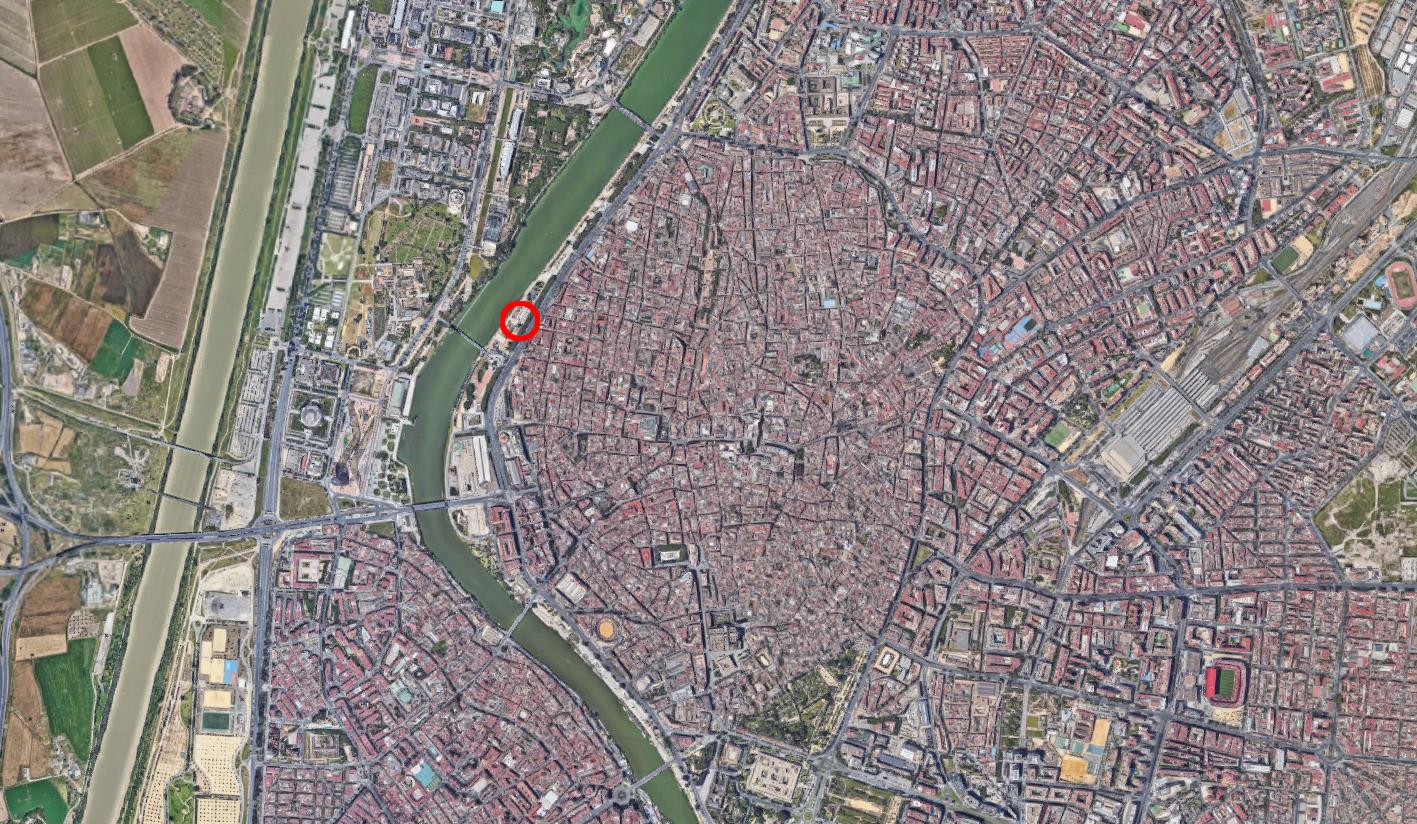La caseta “La Única” se encuentra situada en la ciudad de Sevilla, entre la avenida Torneo y el paseo de la ribera del rio, en la zona del puente-pasarela de la Cartuja.