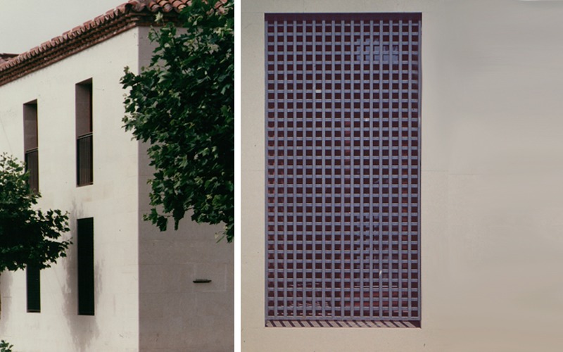 En el exterior se simplificaron y reordenaron los alzados. Como revestimiento se utilizó piedra caliza, un material habitual de la época, para potenciar la presencia y el carácter representativo del edificio.