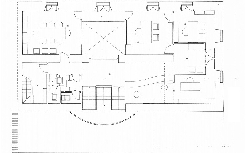 En el espacio bajo cubierta se situaron archivos, cuartos de instalaciones y el reloj.