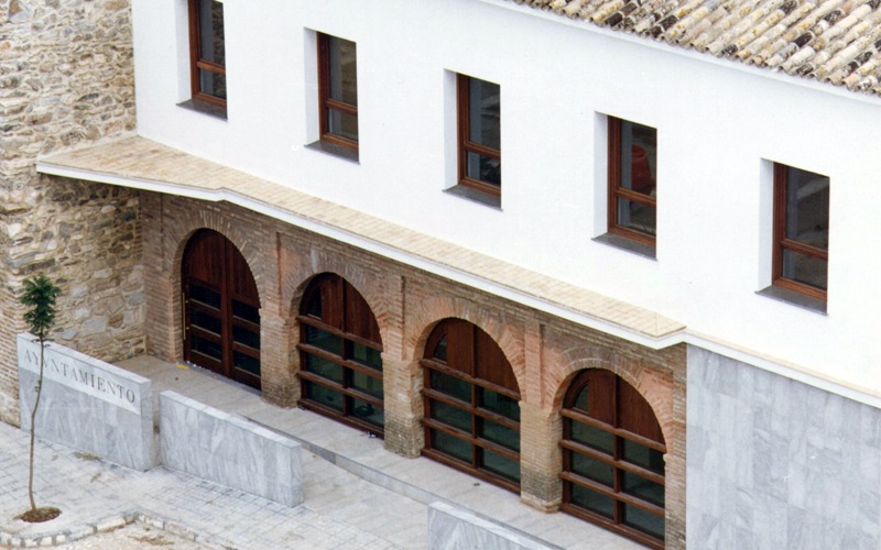 El proyecto de rehabilitación del Pósito de Trigo para el Ayuntamiento en Almadén de la Plata (Sevilla) fue promovido por la Dirección General de Arquitectura y Vivienda de la Consejería de Obras Públicas y Transportes de la Junta de Andalucía. La obra se llevó a cabo en el año 1997.