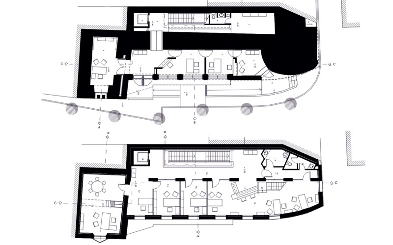 Recuperación de la segunda crujía en planta baja: Se convirtió en el espacio de comunicaciones del edificio, liberando la primera crujía, la fachada y la torre para zonas de trabajo.