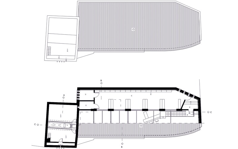 Conservación de la estructura del pósito en planta primera: Se mantuvo el espacio único, con una fuerte presencia de las cubiertas, utilizando pilastras que permiten vistas cruzadas y acristalando los espacios entre ellas.