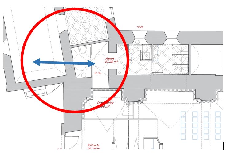 Se recupera también el acceso original, cegado años atrás, en el extremo norte del mismo, dando a la pequeña plaza que se forma en el cruce de las calles Herrería y Marqués de Riocabado. De esta forma, la entrada al espacio expositivo, además de ser accesible, está vinculada a un espacio público y junto al de la Iglesia, potenciando la plaza como catalizador urbano.