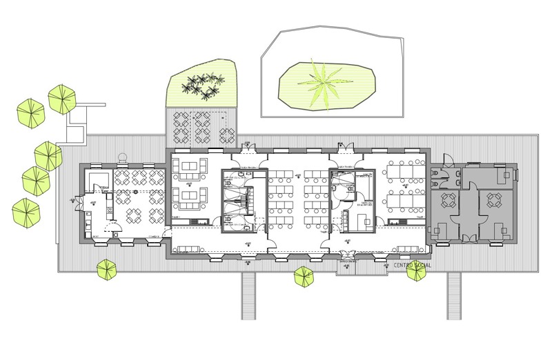 Reforma del Centro Social: Se mejoraron los espacios e instalaciones en el interior del edificio, manteniendo su envolvente externa.