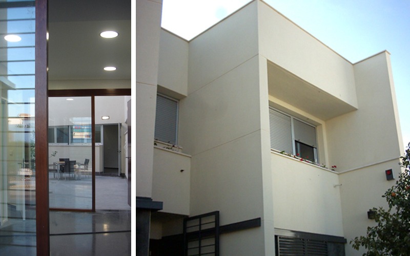 El proyecto consiste en una Casa-Hogar situada en una parcela dotacional del Plan Parcial Z-4 “San Benito”, con forma de sector circular. La parcela tiene una superficie total de 353 m² y presenta un pequeño desnivel de hasta 0,88 m entre los puntos extremos. El acceso se realiza por la zona más alta de la parcela, y las diferencias de nivel se salvan construyendo forjados sanitarios en las zonas más bajas, mientras que el patio queda a nivel con la zona pública del edificio (entrada, salón, comedor, zona de servicio, etc.).