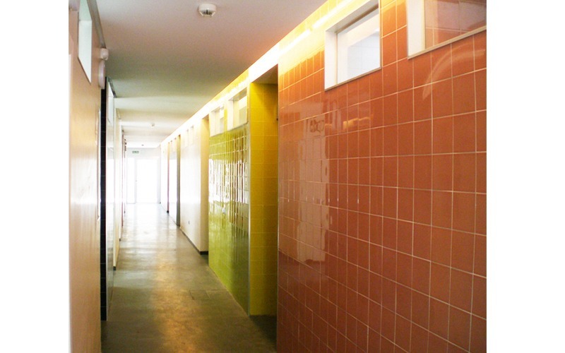 El módulo habitacional propuesto queda definido por los muros de carga que constituyen el sistema estructural y está formado por habitaciones agrupadas en bloques de dos, que permiten una optimización en el uso de baños y aseos compartidos por cada dos residentes.