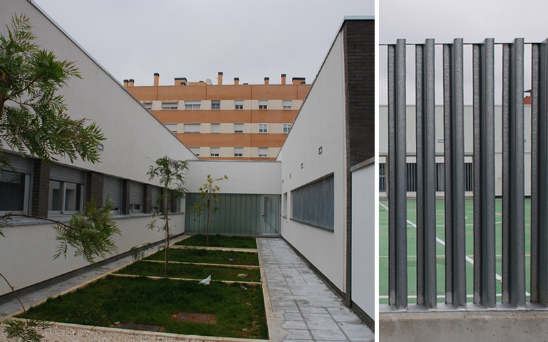 En la parte más ancha de la parcela se encuentra la pista polideportiva, junto con aseos y almacenes, que serán utilizados por los usuarios del Centro Social. Estos espacios comparten el acceso y la zona de aparcamiento con el Centro Social.