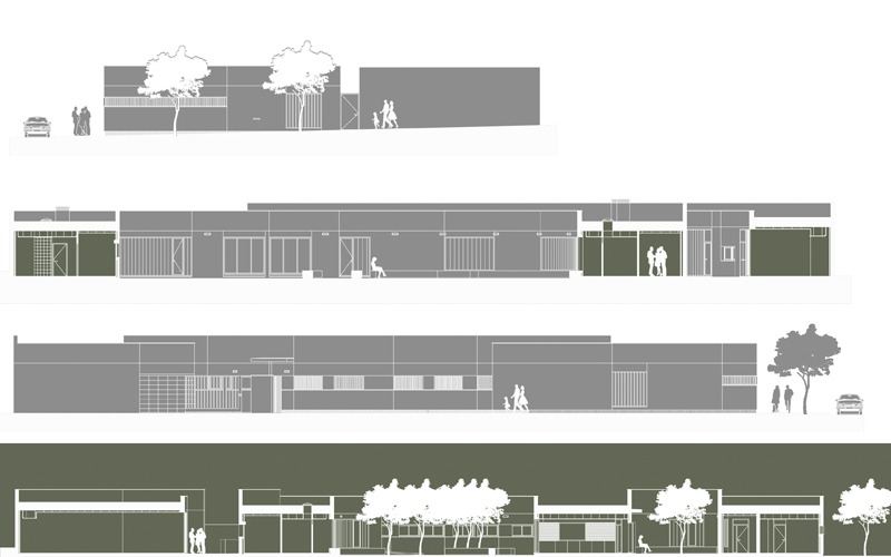 En la zona sur de la parcela se proyecta otro volumen independiente que acoge los Talleres Ocupacionales dejando una “calle” entre ambos con acceso propio por la Calle Buen Pastor.