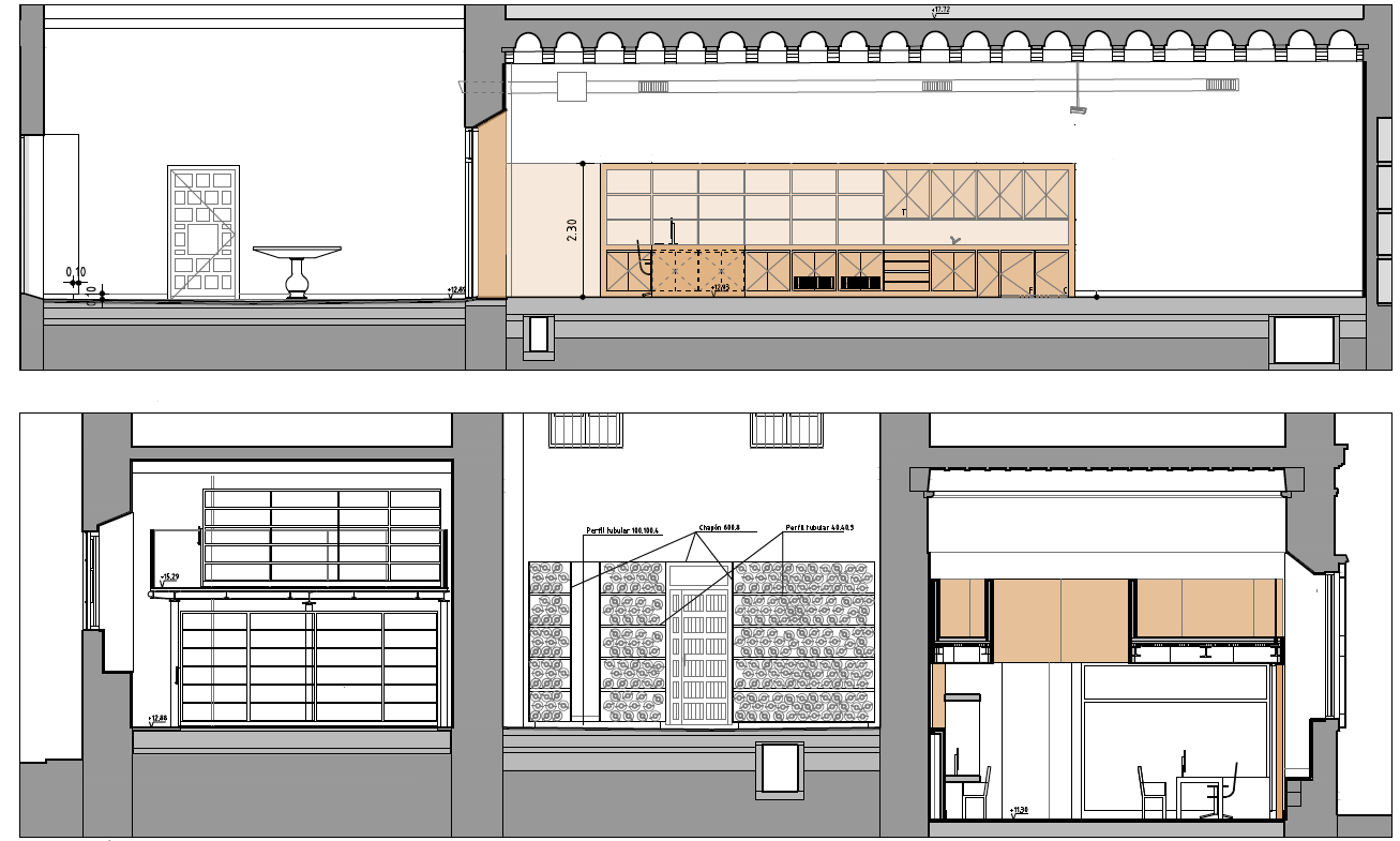 restaurar las carpinterías de madera existentes (puerta, ventana, frente de armario), sustituir los acristalamientos por otros de alta eficiencia; elevar la puerta de acceso añadiendo una ventana abatible en la parte superior para permitir el paso de obras de gran formato.