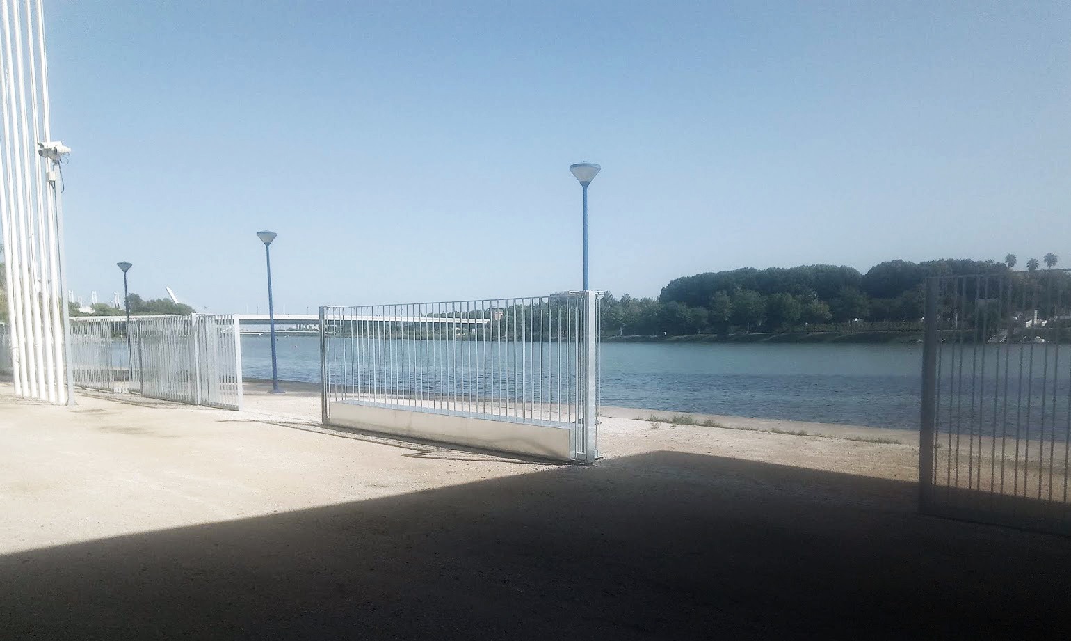 El objeto de la intervención es la ejecución de un nuevo vallado del Pabellón de la Navegación que libere una franja en el borde del río y recupere para la ciudad el paseo de ribera actualmente interrumpido. El nuevo paseo dará continuidad al de reciente creación frente al nuevo Parque de Magallanes y lo conectará con el Jardín Americano y el resto de los espacios verdes y paseos de ribera existentes en la margen derecha de la dársena del Guadalquivir a su paso por la Isla de la Cartuja.